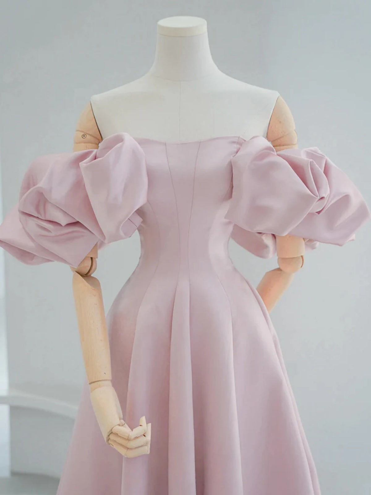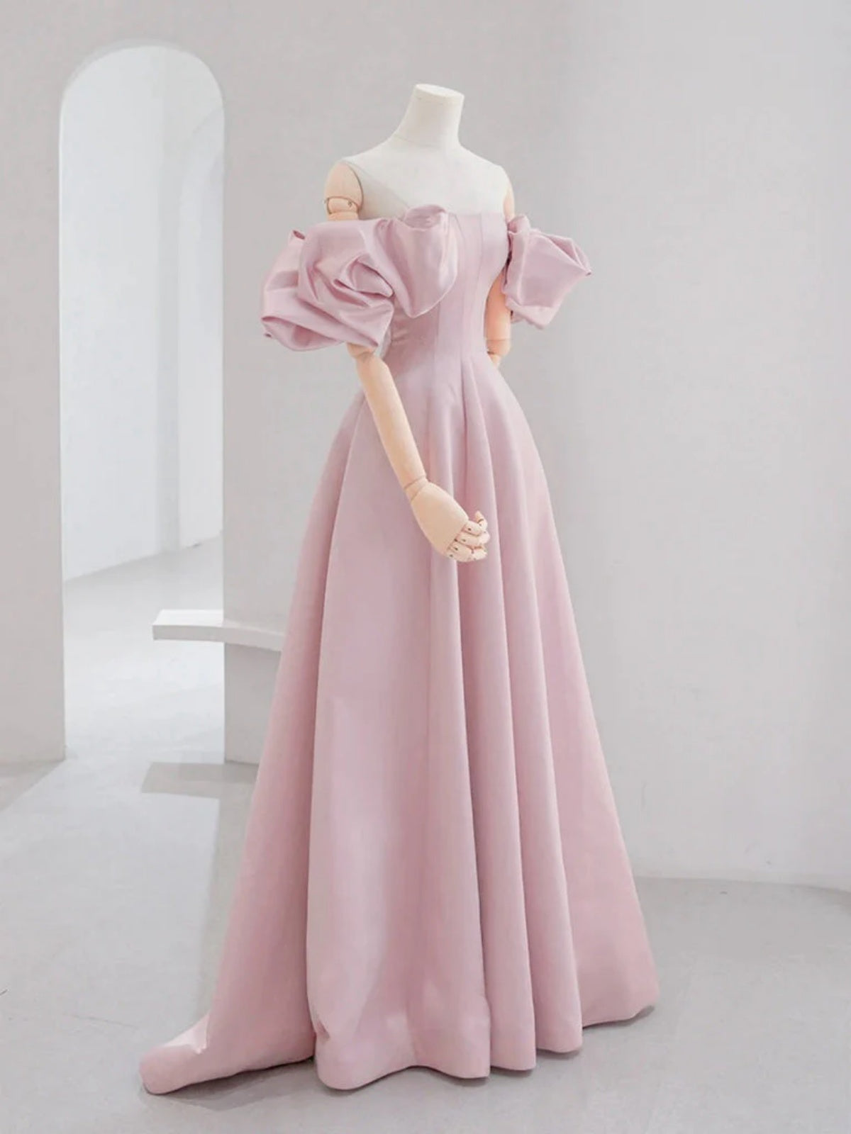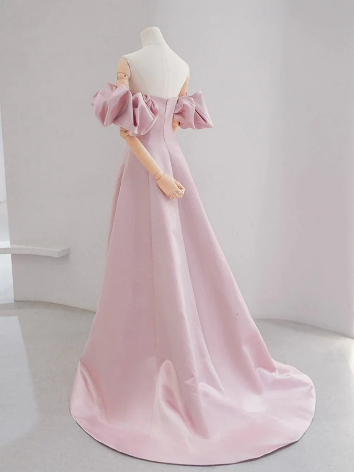 Off the Shoulder Light Pink Satin Prom Dresses, Light Pink Off Shoulder Long Formal Evening Dresses