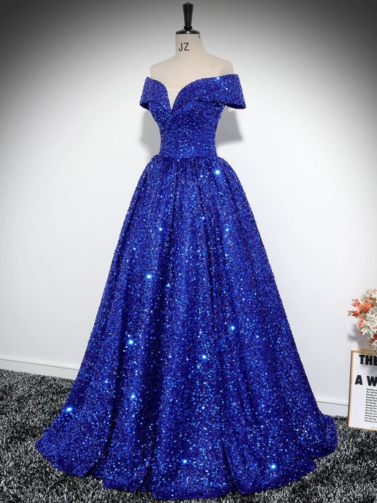 Off the Shoulder Royal Blue Prom Dresses, Off Shoulder Royal Blue Formal Evening Dresses